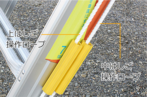 上はしごと中はしごの伸縮ロープを独立させ、はしご伸縮時の操作順序をなくしました。