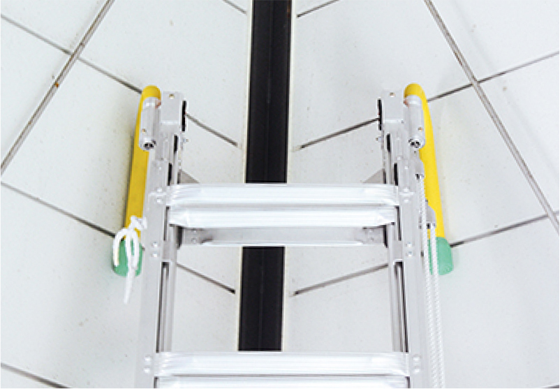 段差や傾斜地にはしごをセットする際、踏さんを水平にでき、側方転倒を防止します。